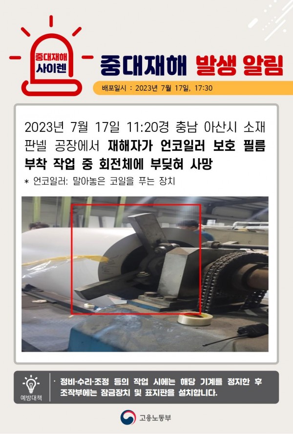 <중대재해>언코일러 회전체 부딪힘 사망 페이지 정보 작성자 안전경영컨설팅 작성일23-08-31 16:40 조회5,130회 댓글0건 관련링크 이전글 다음글 목록 본문 . 댓글목록 등록된 댓글이 없습니다. 이전글 다음글 목록