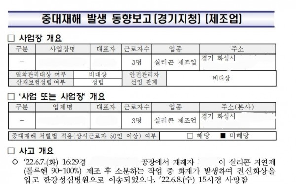 <중대재해>실리콘 지연제 소분 작업중 화재 페이지 정보 작성자 안전경영컨설팅 작성일22-07-14 09:11 조회5,111회 댓글0건 관련링크 이전글 다음글 목록 본문 . 댓글목록 등록된 댓글이 없습니다. 이전글 다음글 목록