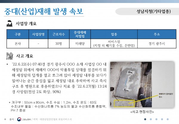 <중대재해> 약물투입 작업 중 세정탑 내 추락 페이지 정보 작성자 안전경영컨설팅 작성일22-07-14 09:12 조회4,947회 댓글0건 관련링크 이전글 다음글 목록 본문 . 댓글목록 등록된 댓글이 없습니다. 이전글 다음글 목록