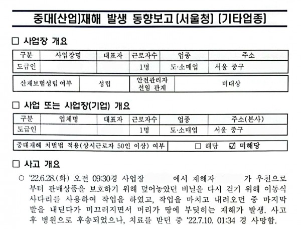 <중대재해> 사다리 이용 중 떨어짐에 의한 머리 부딪힘 페이지 정보 작성자 안전경영컨설팅 작성일22-08-18 08:54 조회5,506회 댓글0건 관련링크 이전글 다음글 목록 본문 . 댓글목록 등록된 댓글이 없습니다. 이전글 다음글 목록