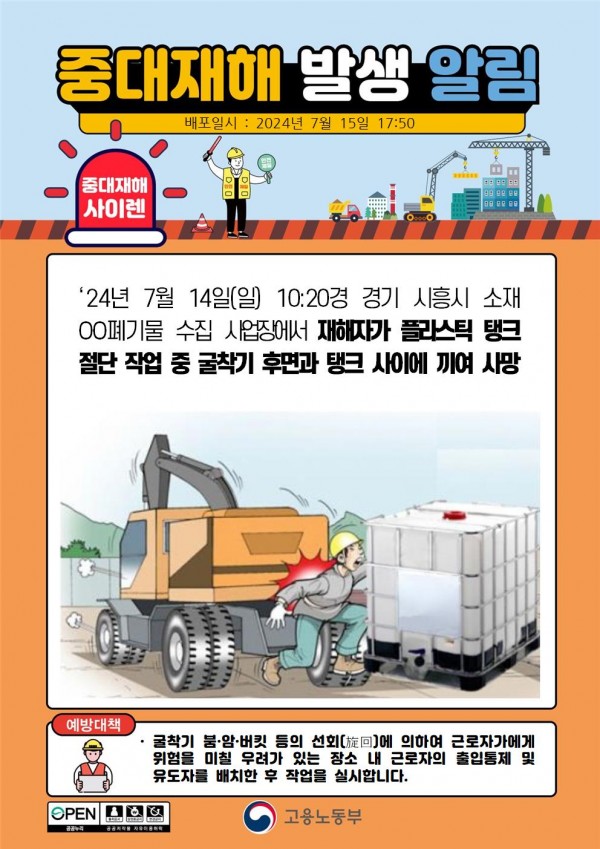폐기물 수집 사업장에서 굴착기와 탱크 사이에 끼여 사망 페이지 정보 작성자 안전경영컨설팅 작성일24-07-17 23:17 조회3,372회 댓글0건 관련링크 이전글 다음글 목록 본문 . 댓글목록 등록된 댓글이 없습니다. 이전글 다음글 목록