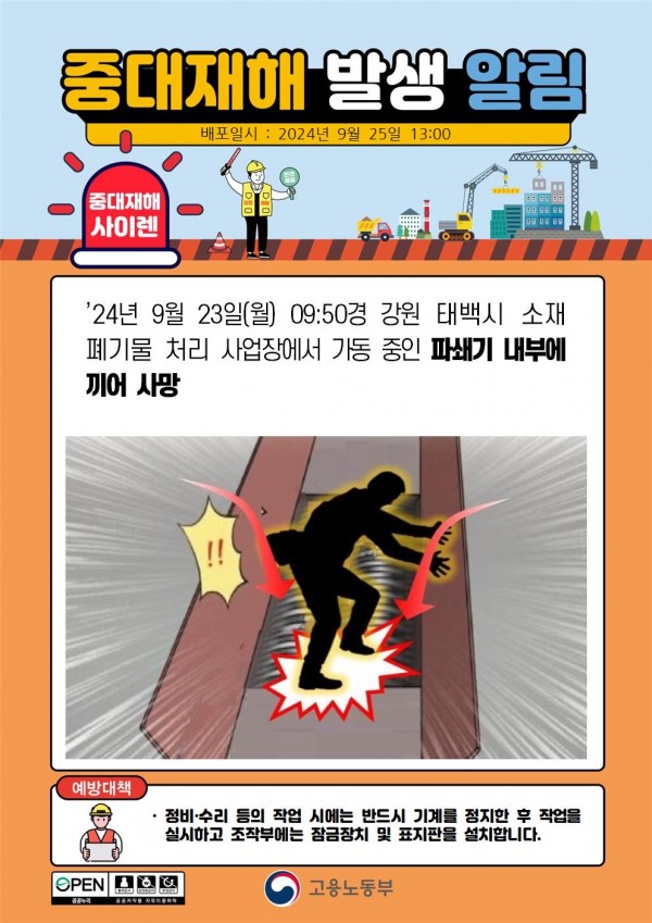 폐기물 처리 사업장에서 파쇄기 내부 끼임 재해 페이지 정보 작성자 안전경영컨설팅 작성일24-11-11 08:47 조회3,381회 댓글0건 관련링크 이전글 다음글 목록 본문 . 댓글목록 등록된 댓글이 없습니다. 이전글 다음글 목록
