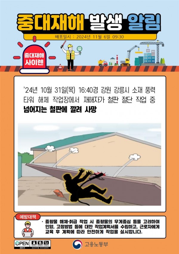 풍력타워 해체 작업 철판 절단 작업 중 철판에 깔림 페이지 정보 작성자 안전경영컨설팅 작성일24-11-11 08:47 조회2,476회 댓글0건 관련링크 이전글 다음글 목록 본문 . 댓글목록 등록된 댓글이 없습니다. 이전글 다음글 목록