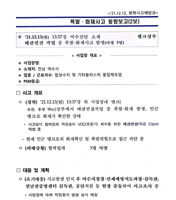 <중대재해> 여수산단 폭발, 화재사고